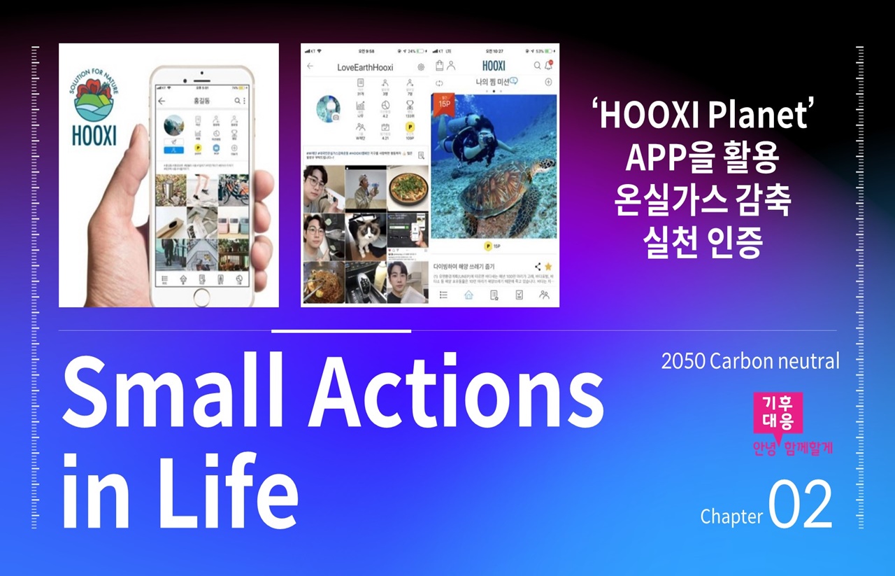 - 어플을 통한 160여개 이상의 일상 속 온실가스 감축 미션 중 선택 실천