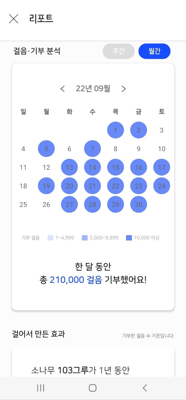 2. 10,000보 이상 걸음수 캠페인 기부한다.