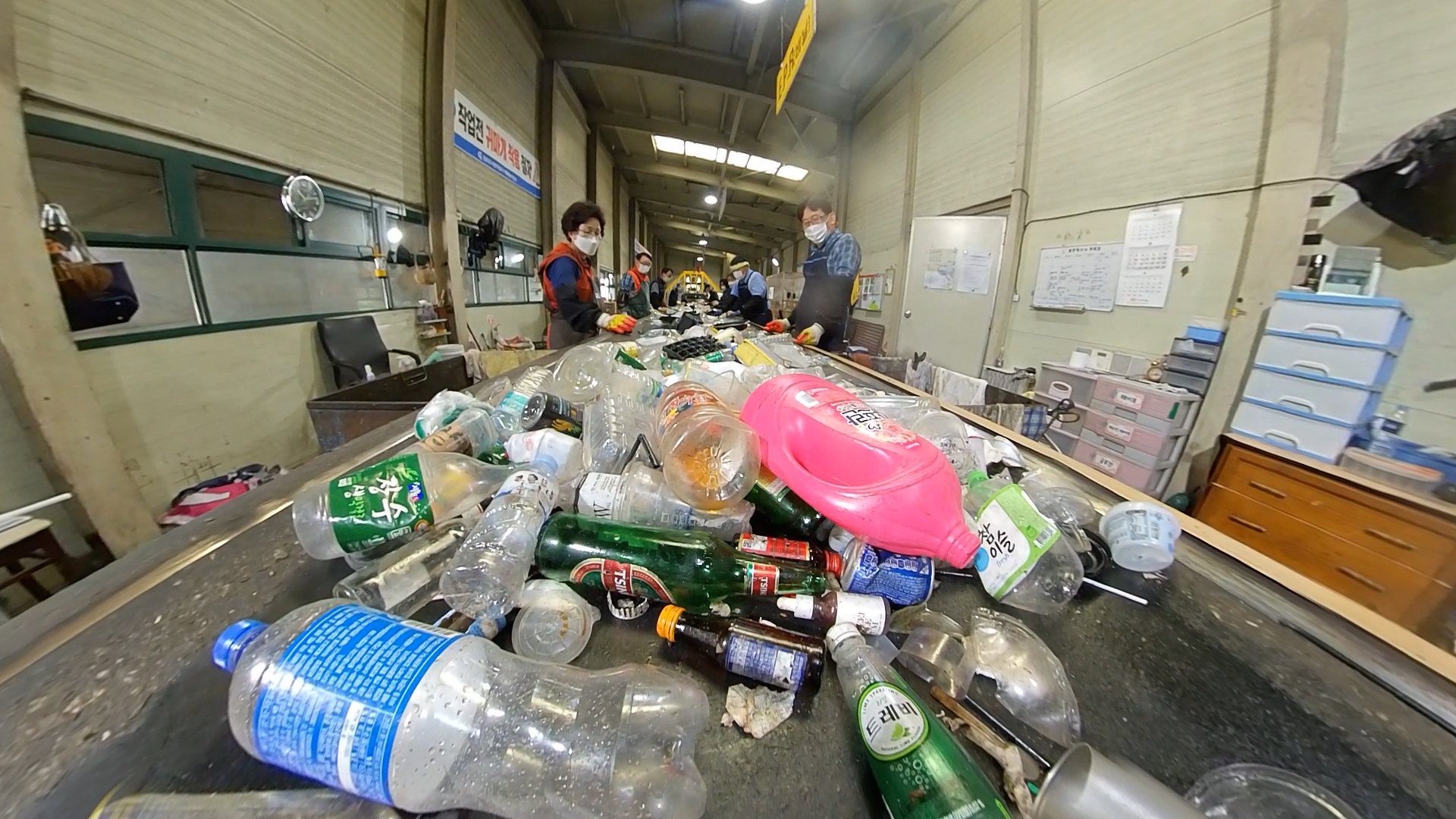 3. 시민들이 직접 주운 폐플라스틱을 시민들이 직접 지자체가 마련한 작은 공간에 가져가서, 그곳에서 시민들이 라벨을 떼고 이물질을 제거한다.